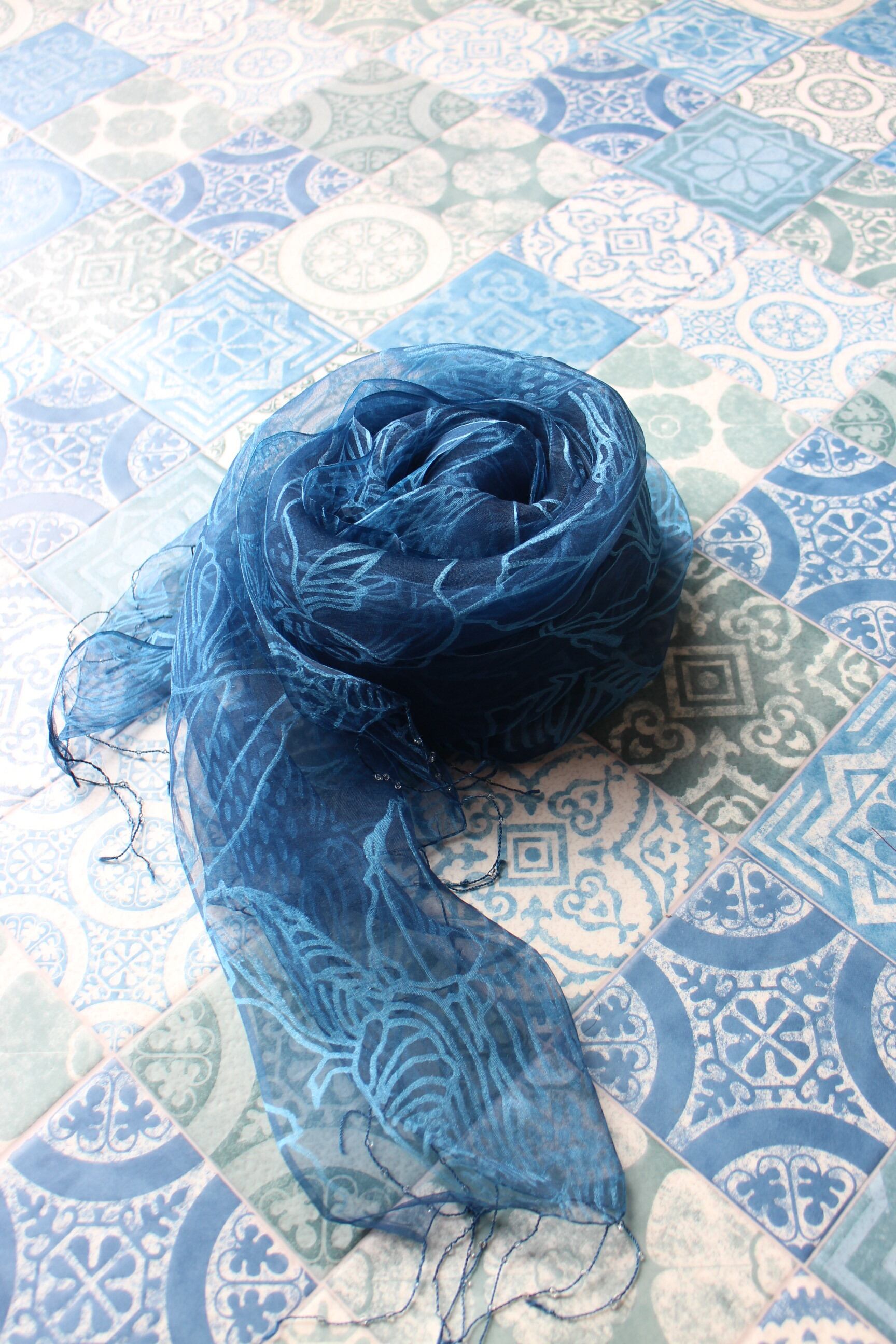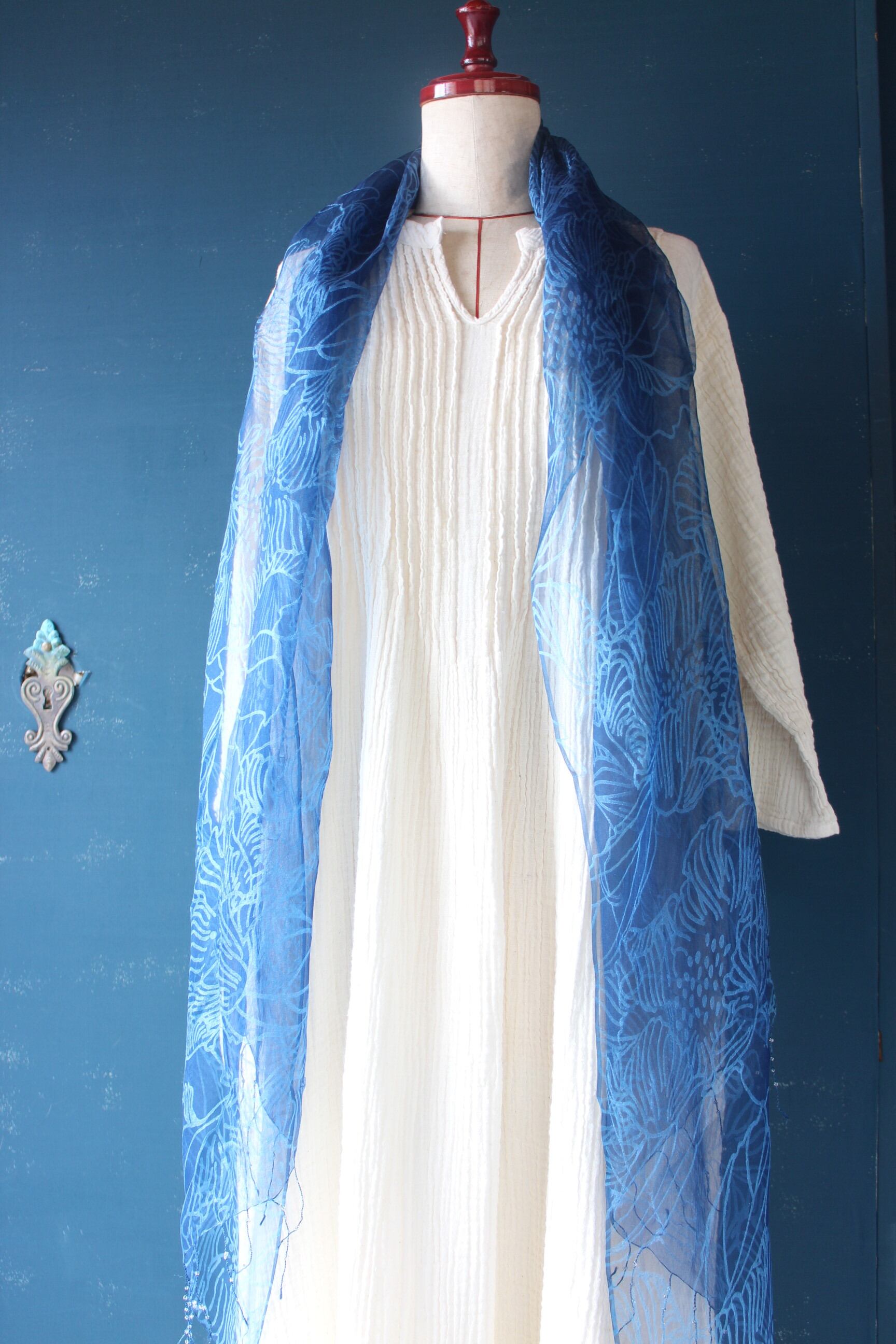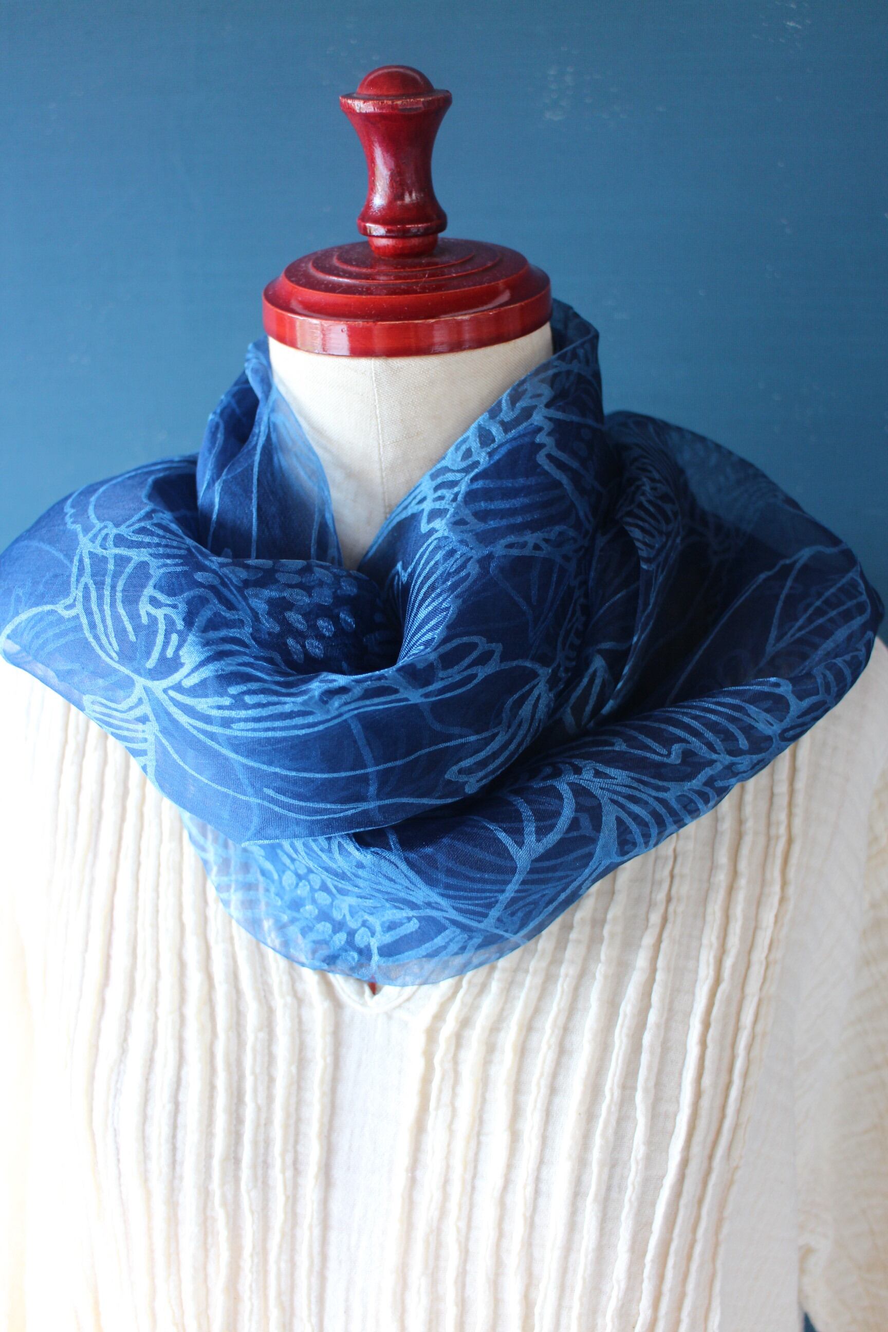 藍の色が美しいシルクスカーフ。